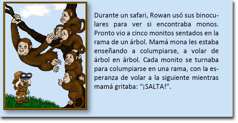 Durante un safari, Brújula Rowan encontraron una manada de monos aprendiendo a columpiarse en las ramas. Cuando un mono joven casi se cae al suelo, Brújula Rowan lo salvó rápidamente.